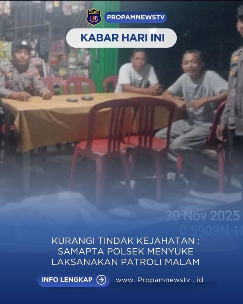 LANDAK // propamnewstv.id – Untuk memberikan rasa aman dan nyaman kepada warga  Personil Polsek Menyuke gencar lakukan patroli di malam hari di Wilayah Kecamatan Menyuke Kabupaten Landak. Minggu, (30/11/2025) malam.