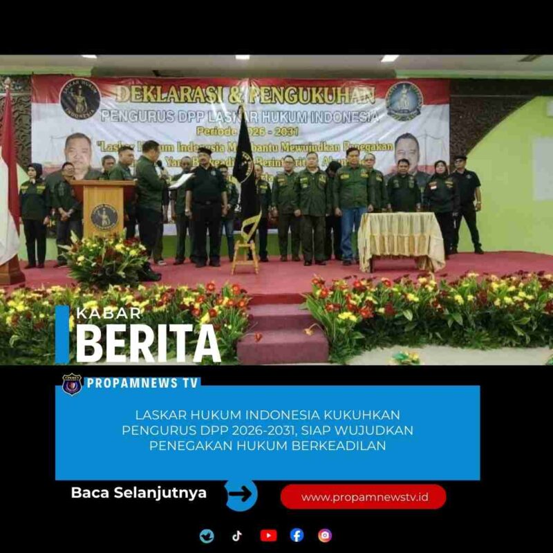 Jakarta, // PropamNewstv.id – 24 Januari 2026, Laskar Hukum Indonesia mengadakan Deklarasi dan Pengukuhan Pengurus Dewan Pimpinan Pusat (DPP) periode 2026-2031 di Jakarta. Acara ini dihadiri oleh Walikota Jakarta Utara dan tokoh-tokoh lainnya.