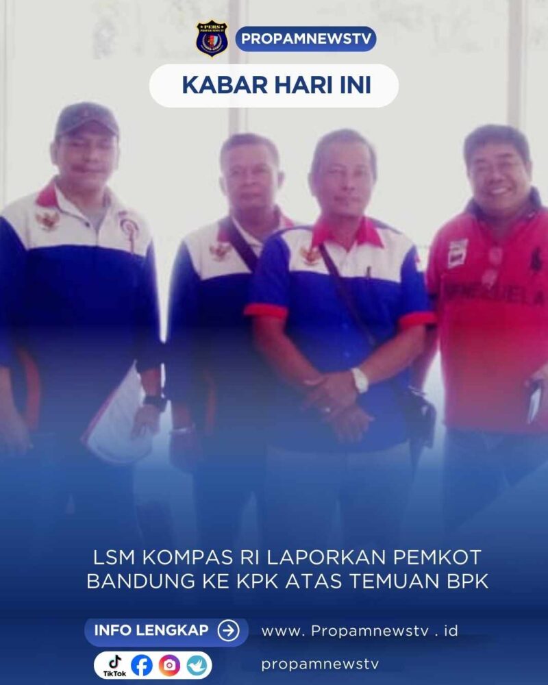 BANDUNG // propamnewstv.id – Dewan Pimpinan Pusat Lembaga Swadaya Masyarakat Komunitas Masyarakat Pemantau Korupsi Republik Indonesia (DPP LSM KOMPAS – RI) secara resmi melaporkan Pemerintah Kota Bandung ke Komisi Pemberantasan Korupsi (KPK) hari ini. Laporan ini didasarkan pada temuan Laporan Hasil Pemeriksaan (LHP) Badan Pemeriksa Keuangan (BPK) yang menemukan adanya dugaan kelebihan pembayaran sebesar Rp4.465.560.000,00 pada Dinas Pendidikan (Disdik) Kota Bandung. Selasa, ( 2/12/2025 ).