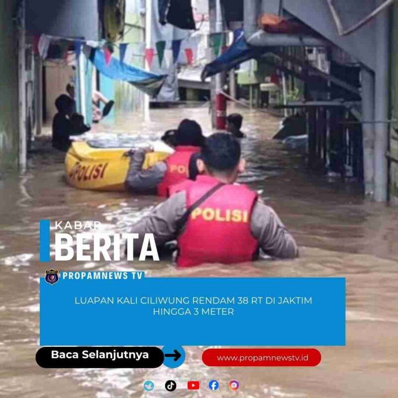 Jakarta, // PropamNewstv.id – Luapan Kali Ciliwung mengakibatkan 38 rukun tetangga (RT) di Jakarta Timur (Jaktim) terendam banjir pada Jumat pagi, 30 Januari 2026. Ketinggian air mencapai tiga meter.