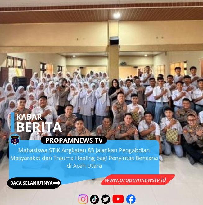 Jakarta, // PropamNewstv – Mahasiswa Sekolah Tinggi Ilmu Kepolisian (STIK) Lemdiklat Polri Angkatan ke-83 melaksanakan misi kemanusiaan melalui program Pengabdian Masyarakat (Dianmas) di wilayah Aceh Utara, Provinsi Aceh. Kegiatan ini menjadi wujud kepedulian calon perwira Polri terhadap masyarakat, khususnya para penyintas bencana alam.