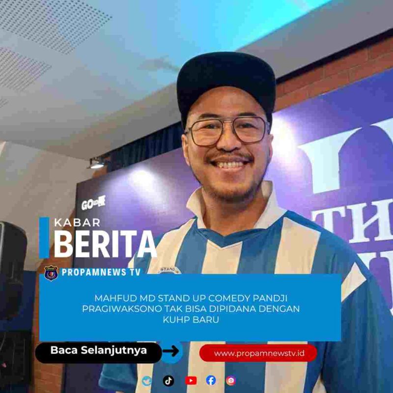 JAKARTA, // PropamNewstv.id – Guru Besar Fakultas Hukum Universitas Islam Indonesia (UII), Mahfud MD menilai, materi stand up comedy berjudul Mens Rea milik komika Pandji Pragiwaksono tak bisa dipidana seiring dengan berlakunya Kitab Undang-Undang Hukum Pidana (KUHP) yang baru. “Kalau itu dianggap menghina (Wakil Presiden Gibran Rakabuming) khusus untuk kasus Pandji Pragiwaksono ini tidak bisa dihukum. Tidak bisa dihukum karena ketentuan ini dimuat di dalam KUHP baru yang berlaku sejak tanggal 2 Januari,” kata Mahfud dilansir dari kanal YouTube Mahfud MD Official, Jumat (9/1/2026)