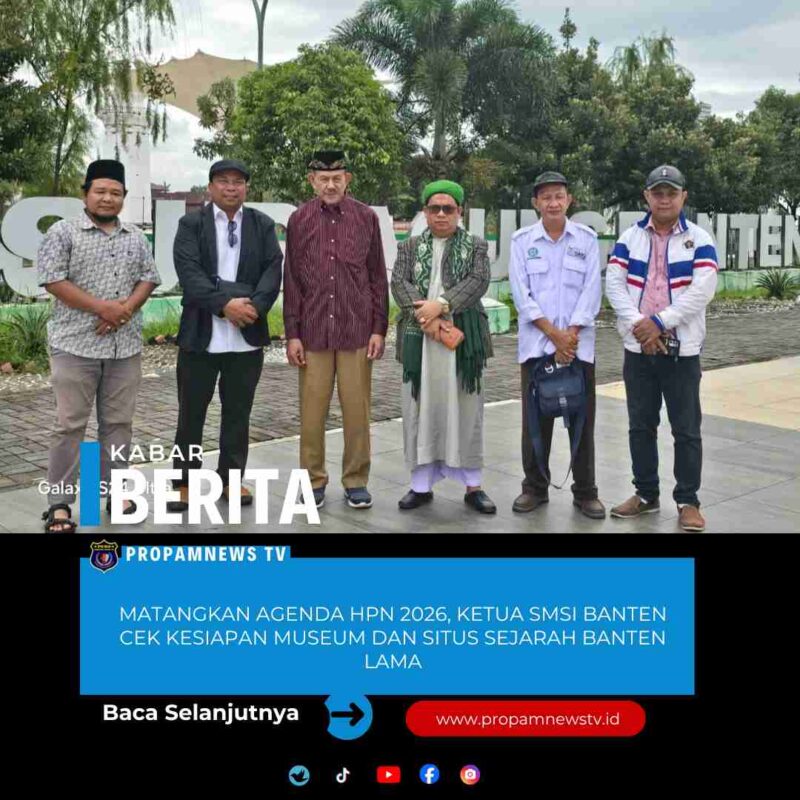 Serang, // PropamNewstv.id – Panitia daerah Hari Pers Nasional (HPN) 2026 mulai memetakan rute kunjungan bagi para tamu nasional. Dipimpin langsung oleh Ketua SMSI Provinsi Banten sekaligus Penasehat PWI Banten, Lesman Bangun, jajaran pengurus melakukan pengecekan lokasi di Museum Banten dan Kawasan Kesultanan Banten Lama, yang direncanakan menjadi titik awal rangkaian acara HPN 2026 di Banten. Senin 02/02/26.
