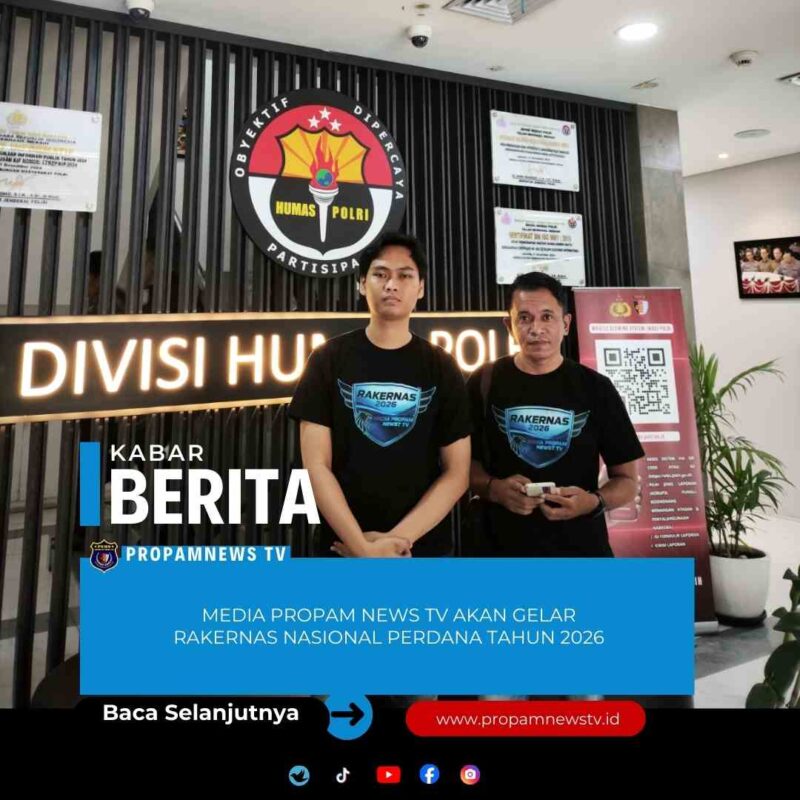 Jakarta //propamnewstv.id – Tinggal menghitung hari, Media Propam News TV akan menggelar Rapat Kerja Nasional (Rakernas) yang akan diikuti oleh seluruh anggota Media Propam News TV se-Indonesia. Kegiatan nasional ini dijadwalkan berlangsung pada 4–5 Februari 2026 dan akan diselenggarakan di salah satu hotel ternama di DKI Jakarta.rabu (28/1/2026).