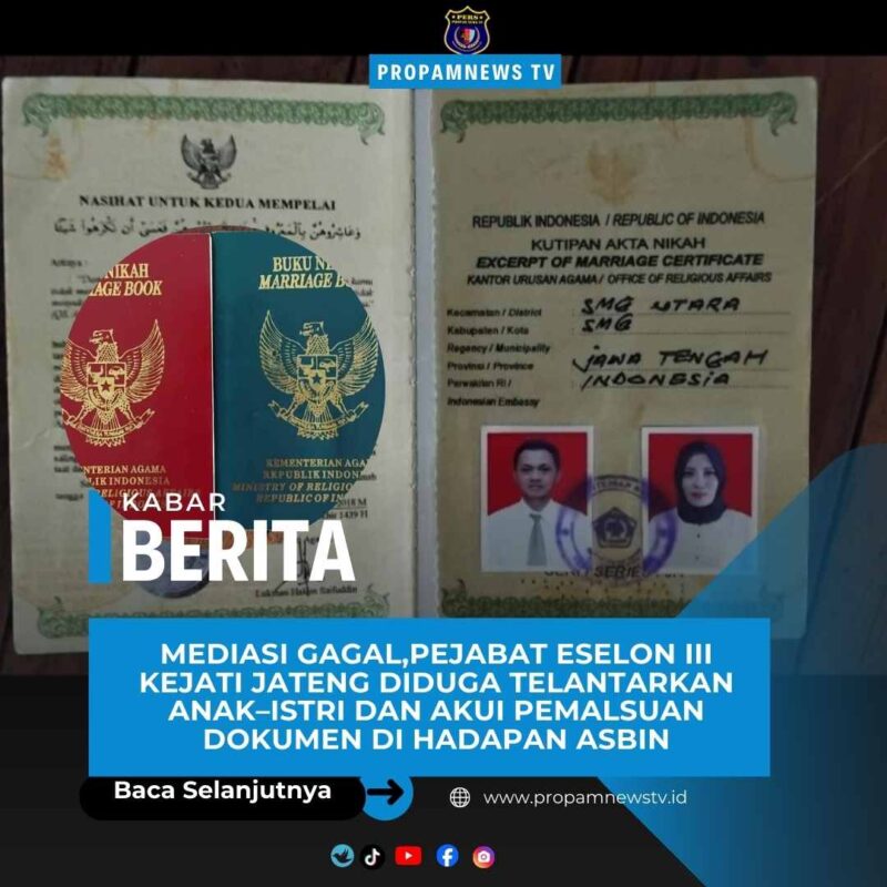 Semarang, 11/12/2025 // propamnewstv.id – Proses mediasi antara pejabat eselon III Kejaksaan Tinggi Jawa Tengah berinisial AK dan istri sirinya SI akhirnya tidak menemukan titik temu.