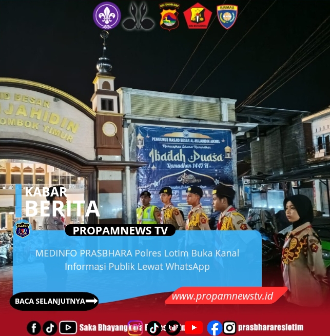 LOMBOK TIMUR, // PropamNewstv.id — Polres Lombok Timur meluncurkan saluran komunikasi publik berbasis aplikasi pesan instan untuk memperluas akses informasi kepada masyarakat. Kanal tersebut dikelola oleh MEDINFO PRASBHARA Polres Lotim dan dapat diikuti melalui platform WhatsApp.