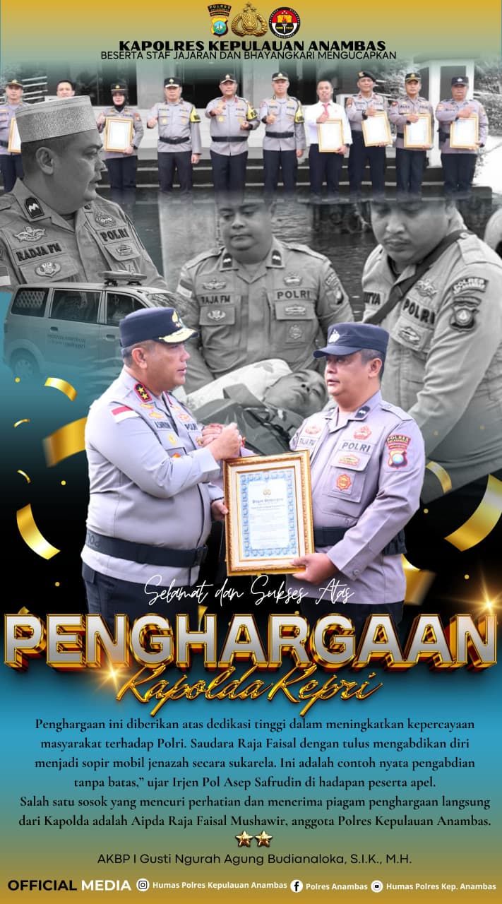 Atas dedikasi dan loyalitas tersebut, pada peringatan Hari Kesadaran Nasional 2026, Aipda Raja Faisal Mushawir menerima penghargaan dari Kapolda Kepulauan Riau, Irjen Pol. Asep Safrudin. Penghargaan diberikan sebagai bentuk apresiasi atas kontribusi nyata dalam meningkatkan kepercayaan masyarakat terhadap Polri, khususnya di wilayah perbatasan NKRI yang jauh dari pusat perhatian.