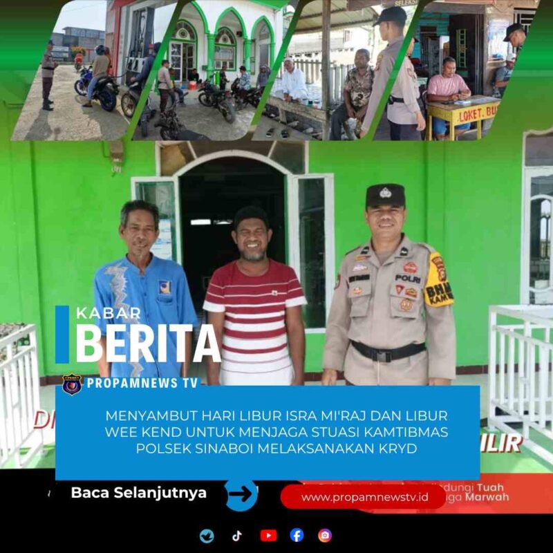 //propamnewstv.id – Dalam upaya menjaga keamanan dan ketertiban masyarakat pada saat long weekend kend Polsek Sinaboi melaksanakan Kegiatan Rutin yang Ditingkatkan (KRYD) di wilayah hukum Polsek Sinaboi, Jumat (16/1/2026).