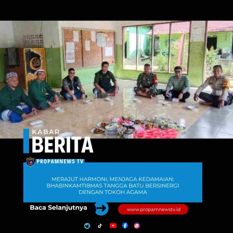 Tanjung Medan, // PropamNewstv.id – Dalam rangka menjaga situasi keamanan dan ketertiban masyarakat (kamtibmas) agar tetap aman dan kondusif, Bhabinkamtibmas Kepenghuluan Tangga Batu, AIPTU FM Sipahutar, melaksanakan kegiatan silaturahmi dengan tokoh agama di Pondok Pesantren Al Irfanul Hakim, Dusun 3 Tangga Batu, Kep. Tangga Batu, Kec. Tanjung Medan, Kab. Rokan Hilir.