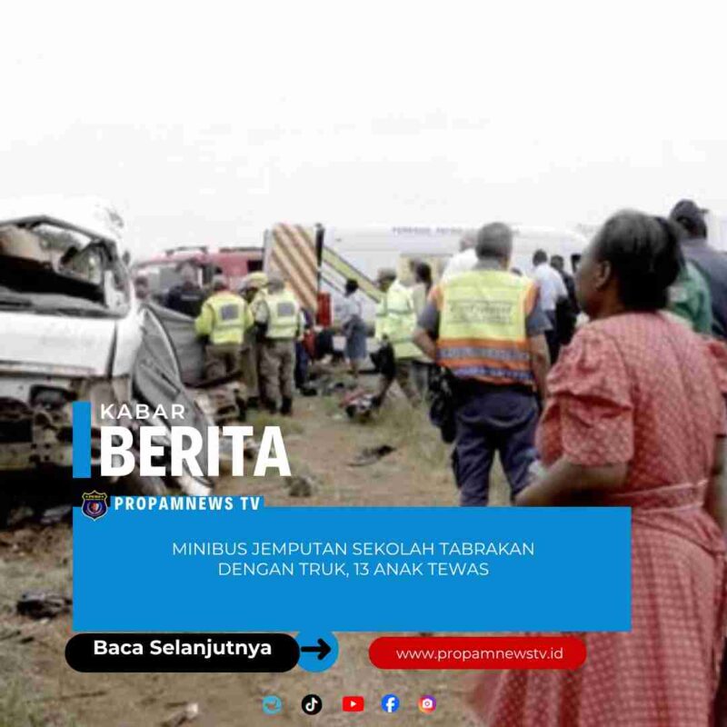 Johannesburg, // PropamNewstv.id – Sebuah minibus yang mengangkut pelajar dalam perjalanan pagi menuju sekolah di Provinsi Gauteng, Afrika Selatan, bertabrakan dengan truk pada Senin (19/1/2026). Insiden tersebut menewaskan setidaknya 13 anak, sebagian besar masih berusia sekolah dasar dan menengah.