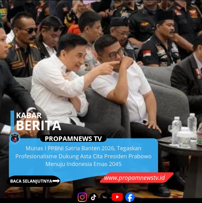 Serang, // PropamNewstv.id – Organisasi kemasyarakatan Patriot Pemersatu Banten Nasional Indonesia (PPBNI) Satria Banten menggelar Musyawarah Nasional (Munas) I tahun 2026 dengan tema “Patriot Pemersatu Banten Nasional Indonesia: Meningkatkan Profesionalisme untuk Mendukung Program Asta Cita Presiden Republik Indonesia menuju Indonesia Emas 2045.” pada hari Minggu (15/2/2026).