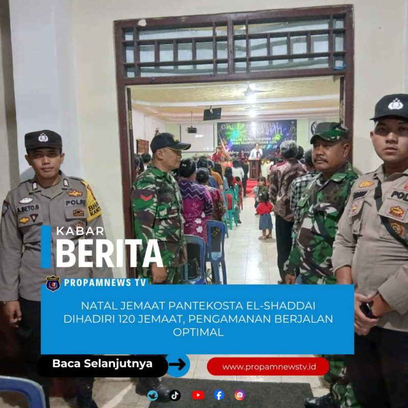 HULU SUNGAI TENGAH //propamnewstv.id – Personel Kodim 1002/HST bersama Polres HST melaksanakan pengamanan kegiatan Ibadah Perayaan Natal Jemaat Kristen Pantekosta yang berlangsung di Gereja Pantekosta di Indonesia (GPdI) El-Shaddai Desa Labuhan, Kecamatan Batang Alai Selatan, Senin (22/12/2025) malam.