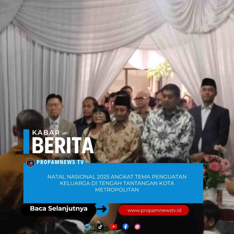 Jakarta // PropamNewstv.id – Rangkaian perayaan Natal Nasional 2025 mengusung tema besar “Allah Hadir untuk Menyelamatkan Keluarga” (Matius 1:21–24), dengan subtema “Keluarga Bertahan di Tengah Tantangan Kota Metropolitan”. Kegiatan ini digelar dalam bentuk Seminar Natal Nasional di Aula Lantai 1 Sekolah Tinggi Filsafat Theologi (STFT) Jakarta, Jumat (3/1/2026).
