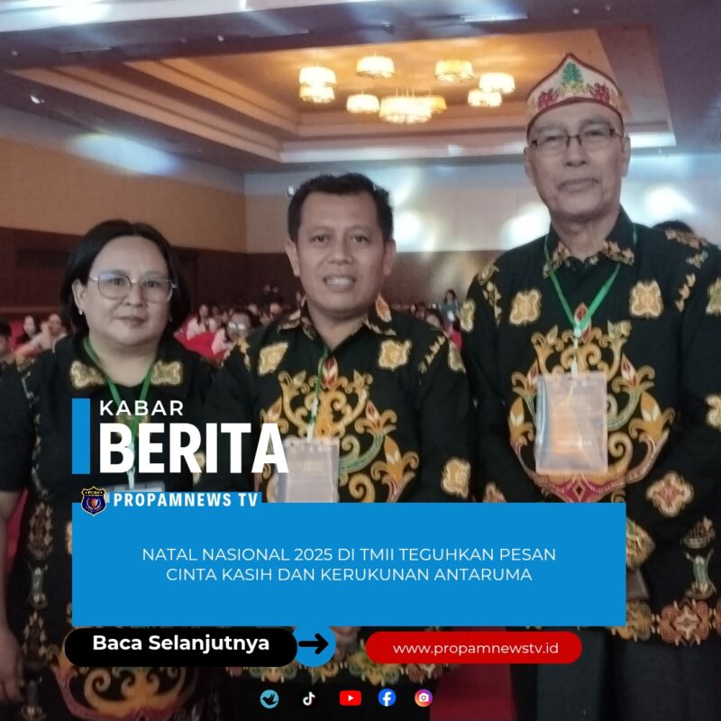 Jakarta //propamnewstv.id – Drs. Walter Punding, M.Pd bersama Pdt. Jiyono, M.Th dari Palangkaraya, Kalimantan Tengah, menghadiri Perayaan Natal Nasional 2025 yang digelar oleh Kementerian Agama RI di Taman Mini Indonesia Indah (TMII), Jakarta. Perayaan ini mengusung tema “C-Light: Christmas Love in God, Harmony Together.”