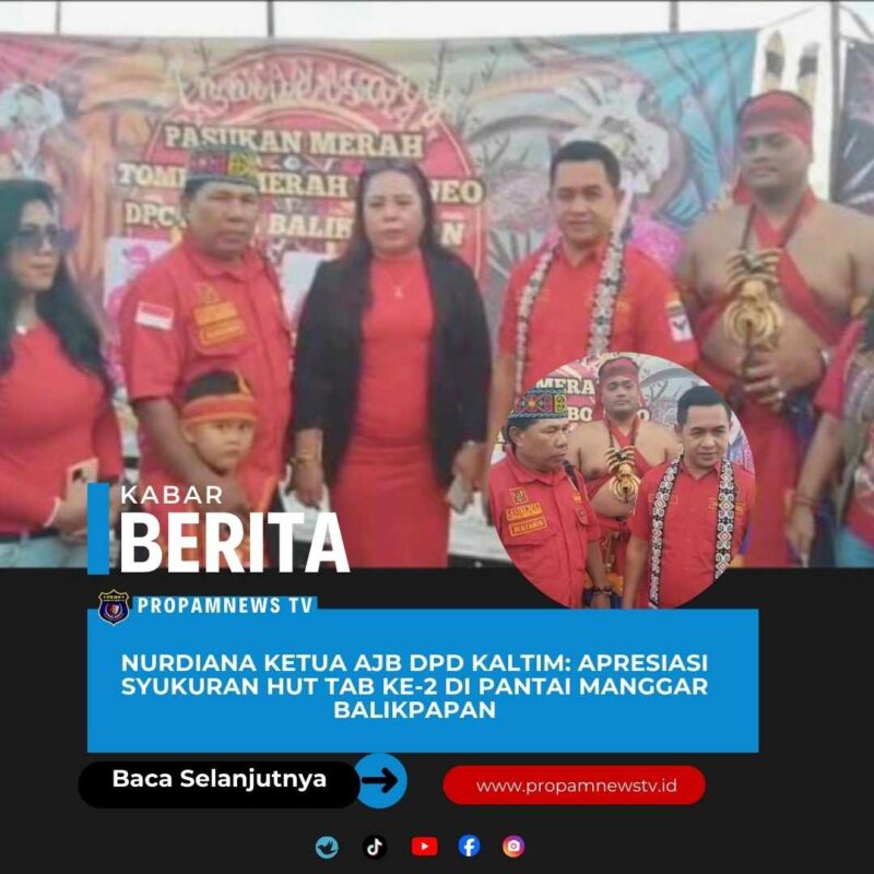 Balikpapan, 20 Desember 2025 // propamnewstv.id – Ketua Aliansi Jurnalis Bersatu (AJB) Dewan Pimpinan Daerah (DPD) Kalimantan Timur (Kaltim), Nurdiana yang akrab dipanggil Nurul, menghadiri acara syukuran Hari Ulang Tahun (HUT) Pasukan Merah dan Laskar Wanita Tombak Merah Borneo (TAB) ke-2 bersama perwakilan AJB Jakarta. Acara berlangsung di Pantai Nelayan, Jalan Mulawarman, Manggar Baru, Balikpapan.