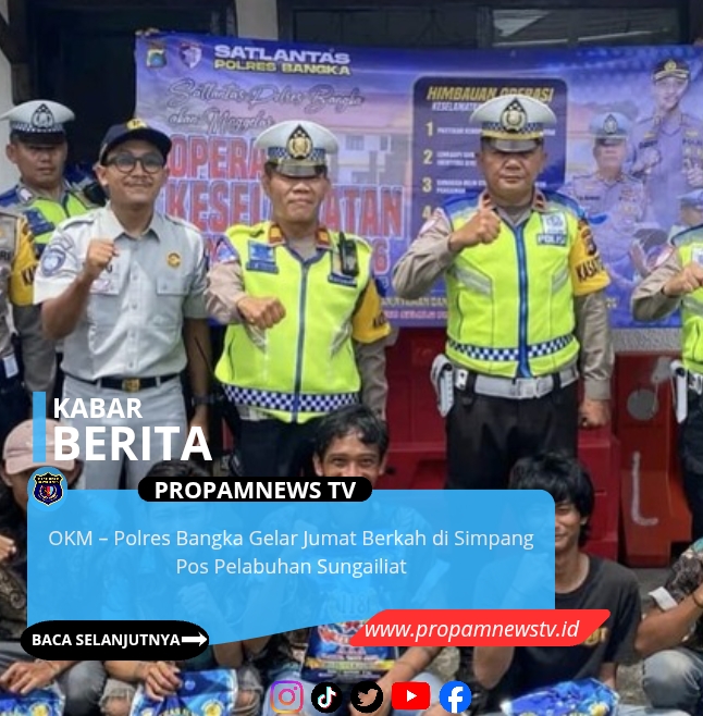 BANGKA, // PropamNewstv – Dalam rangka Operasi Keselamatan Menumbing (OKM) 2026, jajaran Polres Bangka melaksanakan kegiatan Jumat Berkah di simpang empat lampu merah Pos Pelabuhan Sungailiat, Jumat (13/2/2026).