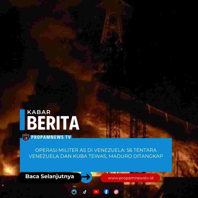 Caracas, // PropamNewstv.id – Sedikitnya 56 tentara Venezuela dan Kuba tewas dalam operasi militer Amerika Serikat (AS) untuk menangkap Presiden Nicolas Maduro pada Sabtu (3/1) waktu setempat.