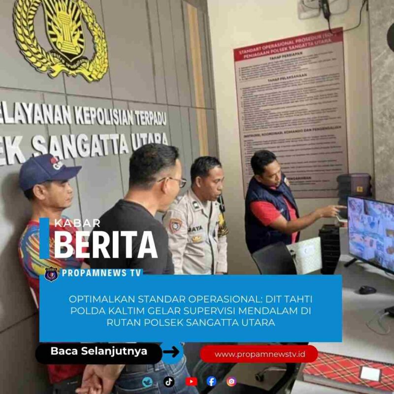 KUTAI TIMUR, // PropamNewstv.id – Dalam upaya memastikan keamanan dan pemenuhan standar operasional prosedur pada fasilitas penahanan, Direktorat Tahanan dan Barang Bukti (Dit Tahti) Polda Kalimantan Timur melaksanakan kegiatan supervisi dan pengecekan menyeluruh di Rumah Tahanan (Rutan) Mako Polsek Sangatta Utara, Polres Kutai Timur, Sabtu (10/1/2026).