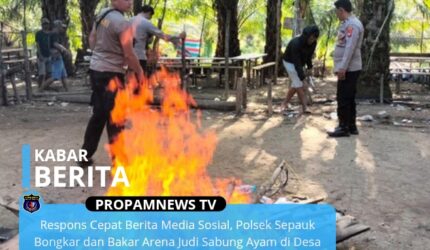 Berita Respons Cepat Berita Media Sosial, Polsek Sepauk Bongkar dan Bakar Arena Judi Sabung Ayam di Desa Lengkenat