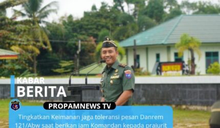 Berita Tingkatkan Keimanan jaga toleransi pesan Danrem 121/Abw saat berikan jam Komandan kepada prajurit Korem 121/Abw