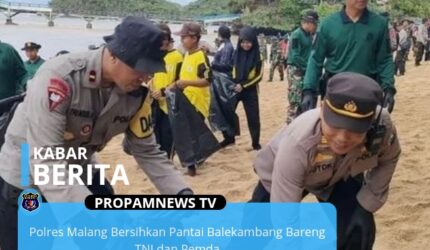 Berita Polres Malang Bersihkan Pantai Balekambang Bareng TNI dan Pemda