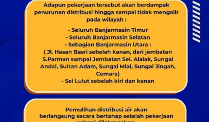 Berita Air Mati Di Banjarmasin Selatan dan Sebagian Banjarmasin Utara