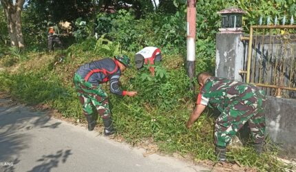 Babinsa Kelurahan Sedau Ajak Warga Bersihkan Rumput Liar Di Jalan Petani
