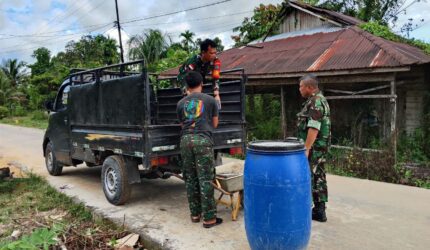 Satgas TMMD ke-126 Kodim 1208/Sambas Angkut Keramik Untuk Pembangunan MCK RTLH