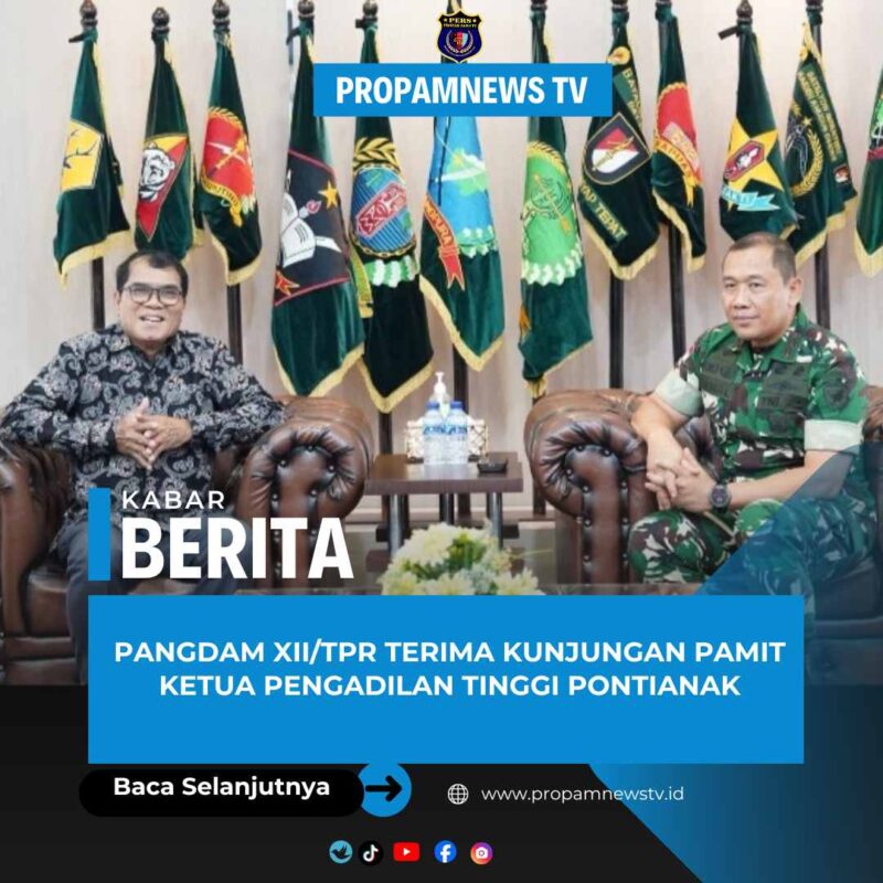 KUBU RAYA // propamnewstv.id – Panglima Komando Daerah Militer (Pangdam) XII/Tanjungpura, Mayjen TNI Jamallulael, S.Sos., M.Si., menerima kunjungan silaturahmi perpisahan dari Ketua Pengadilan Tinggi Pontianak, F. Willem Saija, S.H., M.H., di Makodam XII/Tpr, Kubu Raya, pada Selasa (9/12/2025).