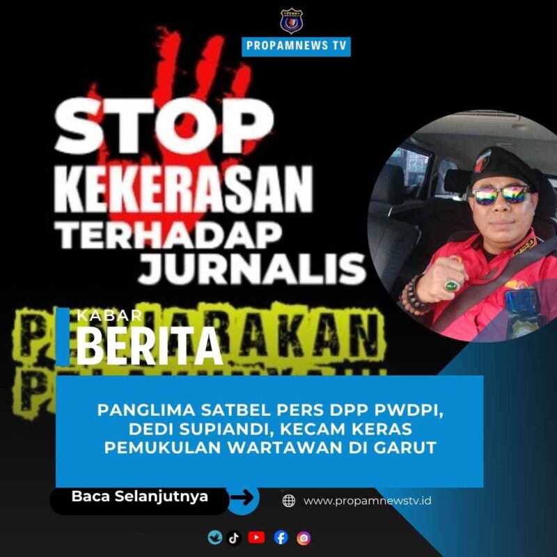Garut // propamnewstv.id — Panglima Satuan Tugas Bela Wartawan (Satbel Pers) DPP PWDPI, Dedi Supiandi, mengecam keras aksi pemukulan terhadap seorang wartawan Propam News TV di Garut yang dilakukan oleh oknum penjaga toko jamu yang diduga menjual minuman keras.