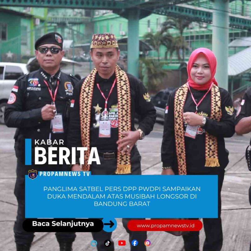 Bandung Barat //propamnewstv.id — Panglima Satuan Tugas Bela Wartawan (Satbel Pers) Dewan Pimpinan Pusat (DPP) Persatuan Wartawan Duta Pena Indonesia (PWDPI), Dedi Supiandi, menyampaikan duka cita yang mendalam atas musibah bencana tanah longsor yang terjadi di Kampung Babakan Cisarua, Kabupaten Bandung Barat.