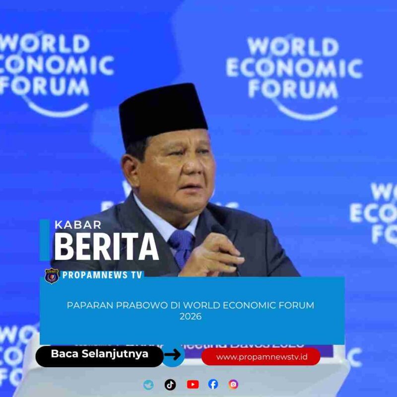 Davos, Swiss // PropamNewstv.id – Presiden Prabowo Subianto berpidato di forum internasional World Economic Forum (WEF) 2026, Davos, Swiss, Kamis (22/1).
