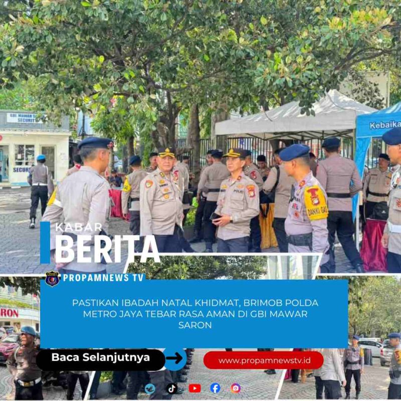 JAKARTA //propamnewstv.id – Dalam rangka memberikan rasa aman dan menjamin kenyamanan umat Kristiani merayakan kelahiran Yesus Kristus, personel Batalyon D Pelopor Kompi 4 Satuan Brimob Polda Metro Jaya melaksanakan pengamanan ketat namun humanis di Gereja Bethel Indonesia (GBI) Mawar Saron, Kelapa Gading, Jakarta Utara.