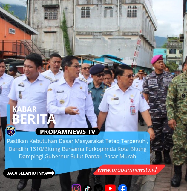 BITUNG, // PropamNewstv.id – Sebagai bentuk kepedulian pemerintah terhadap kebutuhan masyarakat, khususnya dalam menjaga stabilitas harga dan ketersediaan bahan pokok menjelang hari besar keagamaan. Komandan Kodim 1310/Bitung bersama Walikota dan Wakil Walikota Bitung serta unsur Forum Koordinasi Pimpinan Daerah (Forkopimda) Kota Bitung mendampingi Gubernur Sulawesi Utara, meninjau penjualan langsung komoditas pangan pokok dalam gelar pasar murah yang dilaksanakan di Pusat Pertokoan Kota Bitung Kel. Bitung Timur, Kec. Maesa, Kota Bitung, Rabu (25/02/2026).