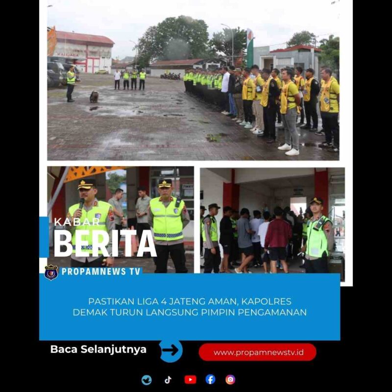 Demak //propamnewstv.id – Untuk memastikan pertandingan sepak bola berjalan aman dan kondusif, Kapolres Demak AKBP Arrizal Samelino Gandasaputra memimpin langsung pengamanan laga antara PSD Demak melawan Persibat Batang pada kompetisi Grup B Liga 4 Jawa Tengah di Stadion Sultan Fatah Demak, Rabu (28/1/2026).
