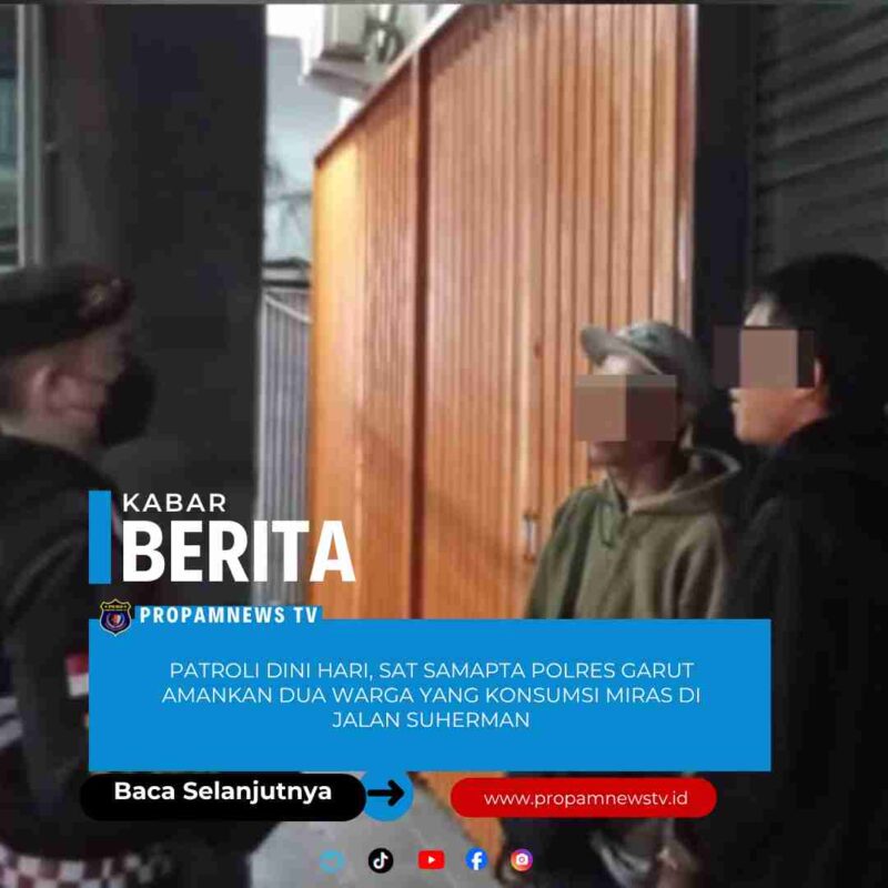 Dalam kegiatan tersebut, petugas mendapati dua orang pemuda berinisial A (45) dan D (39), warga Kecamatan Tarogong Kidul, yang sedang mengonsumsi minuman keras di pinggir jalan.