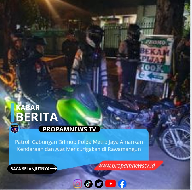 Jakarta, // PropamNewstv.id – Patroli gabungan Brimob Polda Metro Jaya dan Perintis Polres Metro Jakarta Timur mengamankan sejumlah kendaraan dan barang bukti yang diduga berkaitan dengan tindak kejahatan jalanan di Jalan Layur, Rawamangun, Jakarta Timur, Rabu (11/2/2026) dini hari. Kegiatan ini merupakan implementasi Program Jaga Jakarta, kebijakan Kapolda Metro Jaya untuk menjaga situasi tetap aman dengan menekan kejahatan jalanan.