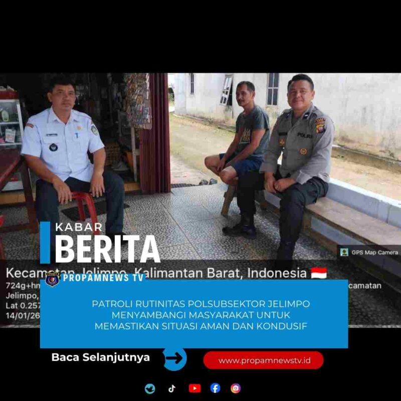 JELIMPO, LANDAK, // PropamNewstv.id – Personel Polsubsektor Jelimpo melaksanakan kegiatan patroli dialogis sebagai upaya menjaga situasi keamanan dan ketertiban masyarakat (kamtibmas) di wilayah hukum Kecamatan Jelimpo. Rabu (14/01/2026)