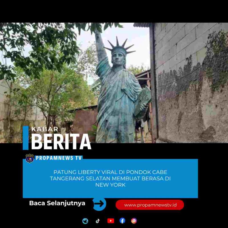 Jakarta, // PropamNewstv.id – Patung Liberty di kawasan Pondok Cabe, Tangerang Selatan, Banten viral di media sosial. Patung replika itu ramai karena disebut membuat Pondok Cabe berasa seperti di New York, Amerika Serikat.