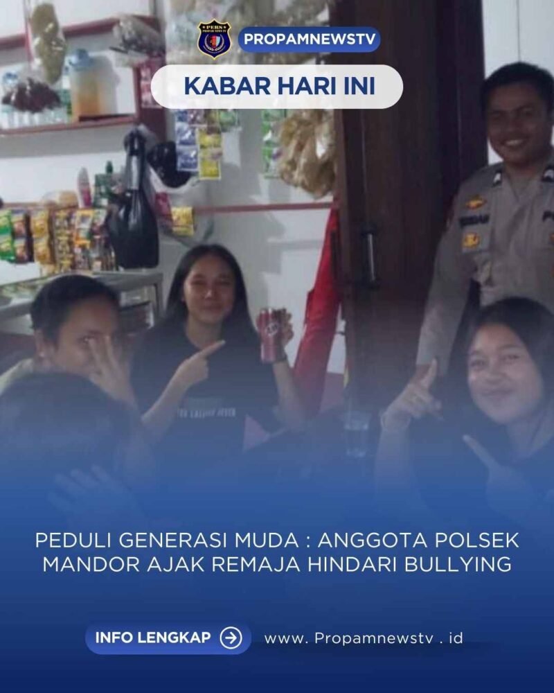 MANDOR,LANDAK//propamnewstv.id – Dalam pelaksanaan patroli malam, petugas Polsek Mandor menyempatkan diri untuk menyapa sekelompok remaja yang sedang berkumpul di salah satu warung, Minggu (30/11/2025). Tidak hanya memastikan situasi kamtibmas tetap kondusif, petugas juga memberikan himbauan mengenai bahaya tindakan bullying yang kerap terjadi di lingkungan sosial maupun dunia digital.