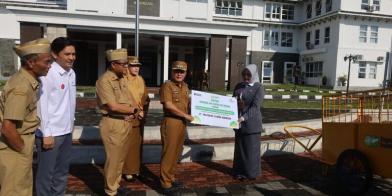KUNINGAN –//PropamNewsTv.id-Pemerintah Kabupaten Kuningan menerima bantuan 12 unit gerobak sampah dari program Corporate Social Responsibility (CSR) PT Pegadaian Cabang Kuningan. Penyerahan dilakukan secara simbolis kepada Bupati Kuningan Dr. H. Dian Rachmat Yanuar, M.Si., didampingi Wakil Bupati Kuningan Tuti Andriani, S.H., M.Kn. dan Sekretaris Daerah Kabupaten Kuningan Uu Kusmana, S.Sos., M.Si., dalam rangkaian apel pagi di halaman Kantor Pemerintah Daerah Kabupaten Kuningan, Senin (16/3/2026).