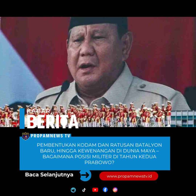 Pembentukan kodam dan ratusan batalyon baru, hingga kewenangan di dunia maya – Bagaimana posisi militer di tahun kedua Prabowo?