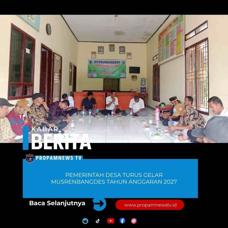 Pandeglang //propamnewstv.id – Pemerintah Desa Turus, Kecamatan Patia, Kabupaten Pandeglang, Provinsi Banten, menggelar Musyawarah Perencanaan Pembangunan Desa (Musrenbangdes) Tahun Anggaran 2027. Kegiatan tersebut dilaksanakan di Kantor Desa Turus pada Rabu (28/1/2026) dan berlangsung lancar serta diikuti secara partisipatif oleh berbagai unsur masyarakat.