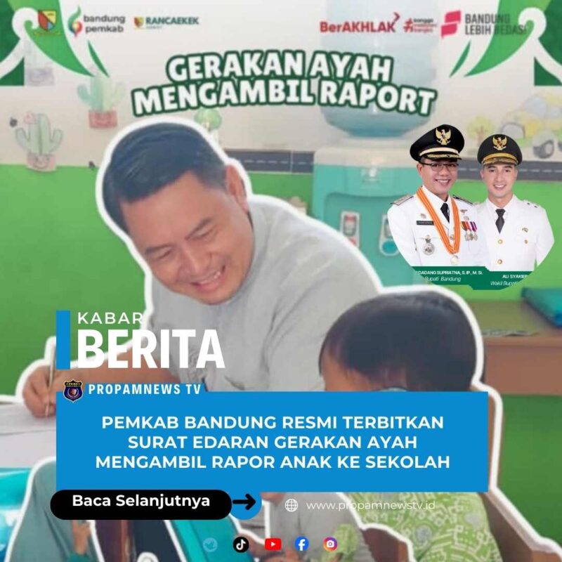 Soreang // PropamNewsTV.id — Pemerintah Kabupaten Bandung resmi menerbitkan Surat Edaran Nomor 400.9.2/008/3641/DP2KBP3A tentang Gerakan Ayah Mengambil Rapor Anak ke Sekolah, sebagai langkah strategis memperkuat peran ayah dalam pengasuhan dan pendidikan anak.