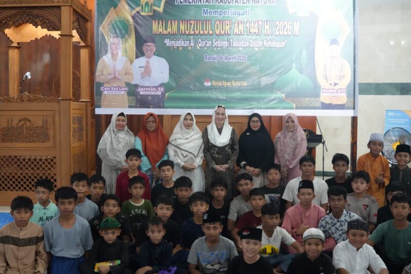 wartaKominfo –//propamnewstv.id/-Pemerintah Kabupaten Natuna menggelar peringatan Malam Nuzulul Qur’an 1447 Hijriah dengan mengangkat tema yaitu “Menjadikan Al Qur’an sebagai Tauladan dalam kehidupan” yang dilaksanakan di Masjid Agung Baitul Izza pada Jum’at (06/03/2026) malam, setelah pelaksanaan salat Isya dan Tarawih berjamaah.