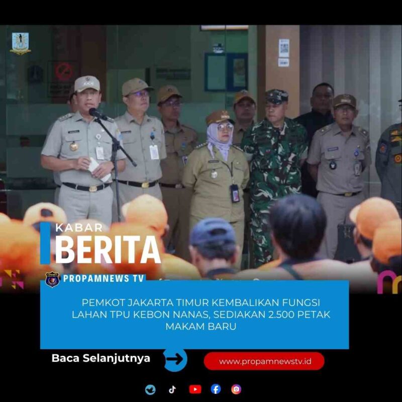 Jakarta //propamneestv.id – Pemerintah Kota Administrasi Jakarta Timur resmi mengembalikan fungsi lahan Taman Pemakaman Umum (TPU) Kebon Nanas yang selama ini digunakan warga untuk bermukim. Pengembalian fungsi lahan TPU Kebon Nanas menyediakan tambahan sekitar 2.500 petak makam baru untuk mengatasi keterbatasan lahan pemakaman di Jakarta.