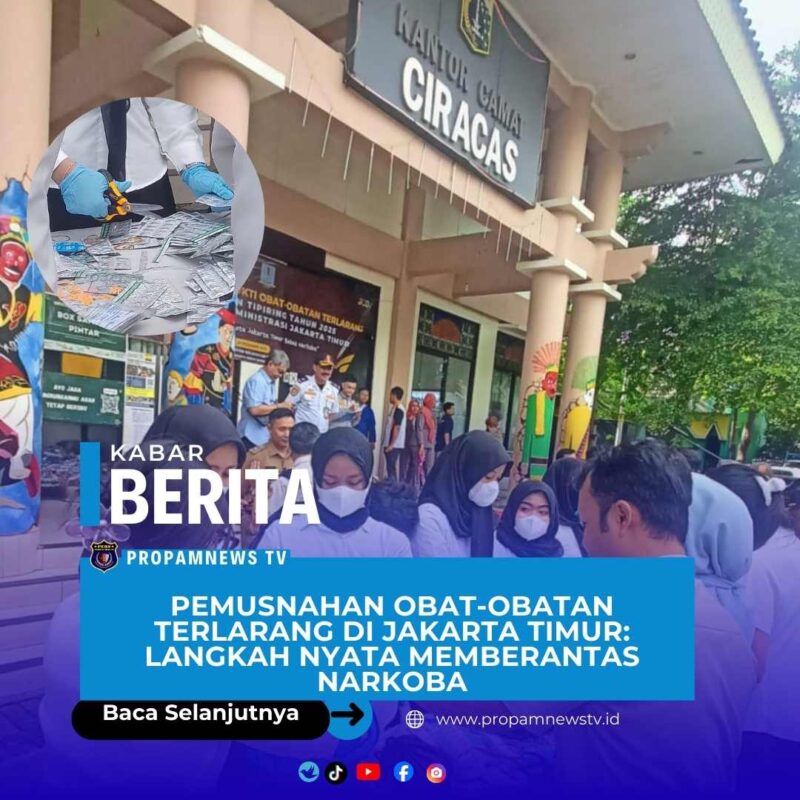 Jakarta Timur // propamnewstv.id – Kantor Kecamatan Ciracas, Jakarta Timur, menjadi saksi bisu pemusnahan barang bukti obat-obatan terlarang yang mengejutkan. Sebanyak 67.000 butir obat-obatan terlarang, termasuk Tramadol, Eximer, dan Jolam, dimusnahkan dalam acara yang dihadiri oleh pejabat setempat dan perwakilan instansi terkait.