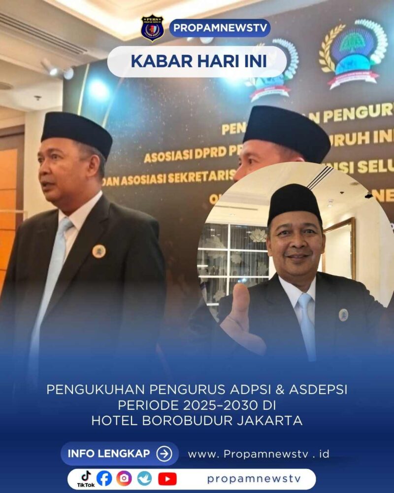 Jakarta // propamnewstv.id – Pengukuhan Pengurus Asosiasi DPRD Provinsi Seluruh Indonesia (ADPSI) dan Asosiasi Sekretaris DPRD Provinsi Seluruh Indonesia (ASDEPSI) periode 2025–2030 resmi dilaksanakan di Hotel Borobudur Jakarta, Ruang Flores, Kamis (4/12). Acara berlangsung khidmat dan dihadiri peserta dari seluruh Indonesia, termasuk unsur pemerintah pusat serta perwakilan DPRD provinsi dan sekretariat DPRD.