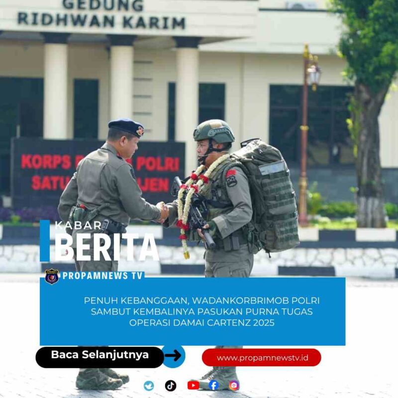 Depok // PropamNewstv.id – Wakil Komandan Korps Brimob Polri Irjen Pol. Reza Arief Dewanto memimpin langsung upacara penyambutan pasukan Korbrimob Polri yang telah selesai melaksanakan tugas operasi Damai Cartenz 2025 di wilayah hukum Polda Papua dan Papua Tengah. Kamis (1/1/2025).