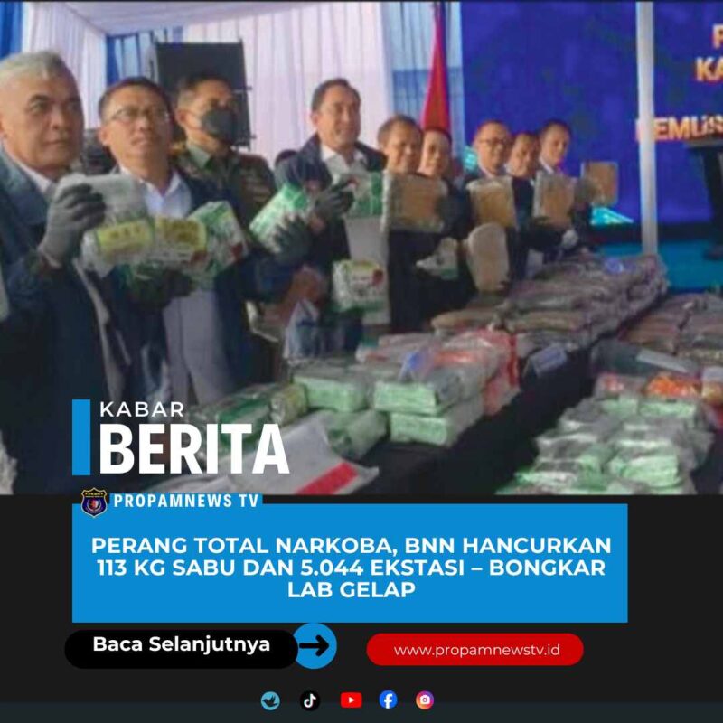 Perang Total Narkoba, BNN Hancurkan 113 Kg Sabu dan 5.044 Ekstasi – Bongkar Lab Gelap